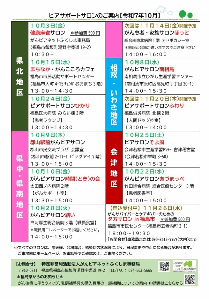 ピアサポートサロンのご案内【2025年10月】